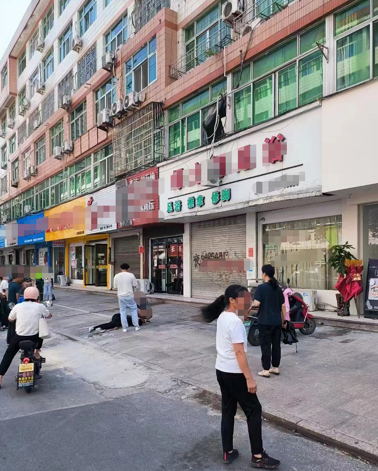 从网友提供的现场视频照片可以看到,事发地是在一家足浴店的门口。